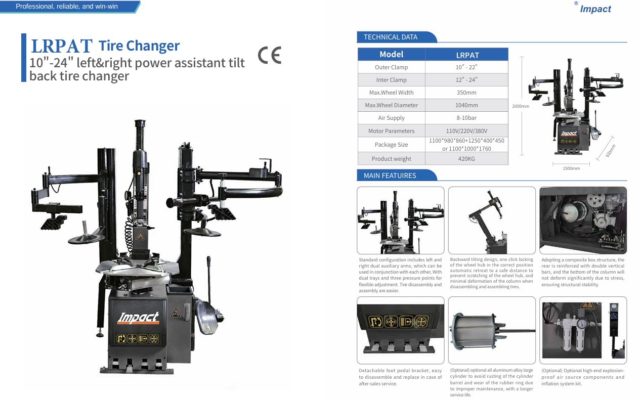 Impact LRPAT Tyre Changer 10″-24″ Left & Right Power Assistant Tilt back Tyre Changer